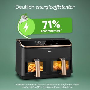 - Wide range of food combinations with the 6-in-1. 2-zone design with baskets: Simply prepare your desired meal completely in the hot air fryer.